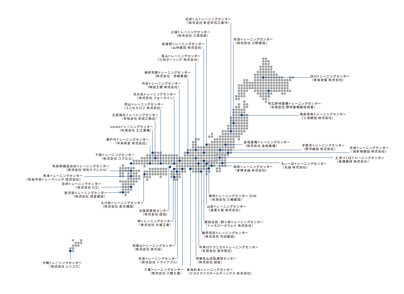 現在、全国建設教習トレーニングセンターにの技能講習の教習所事業に加盟している加盟店をご紹介します。
